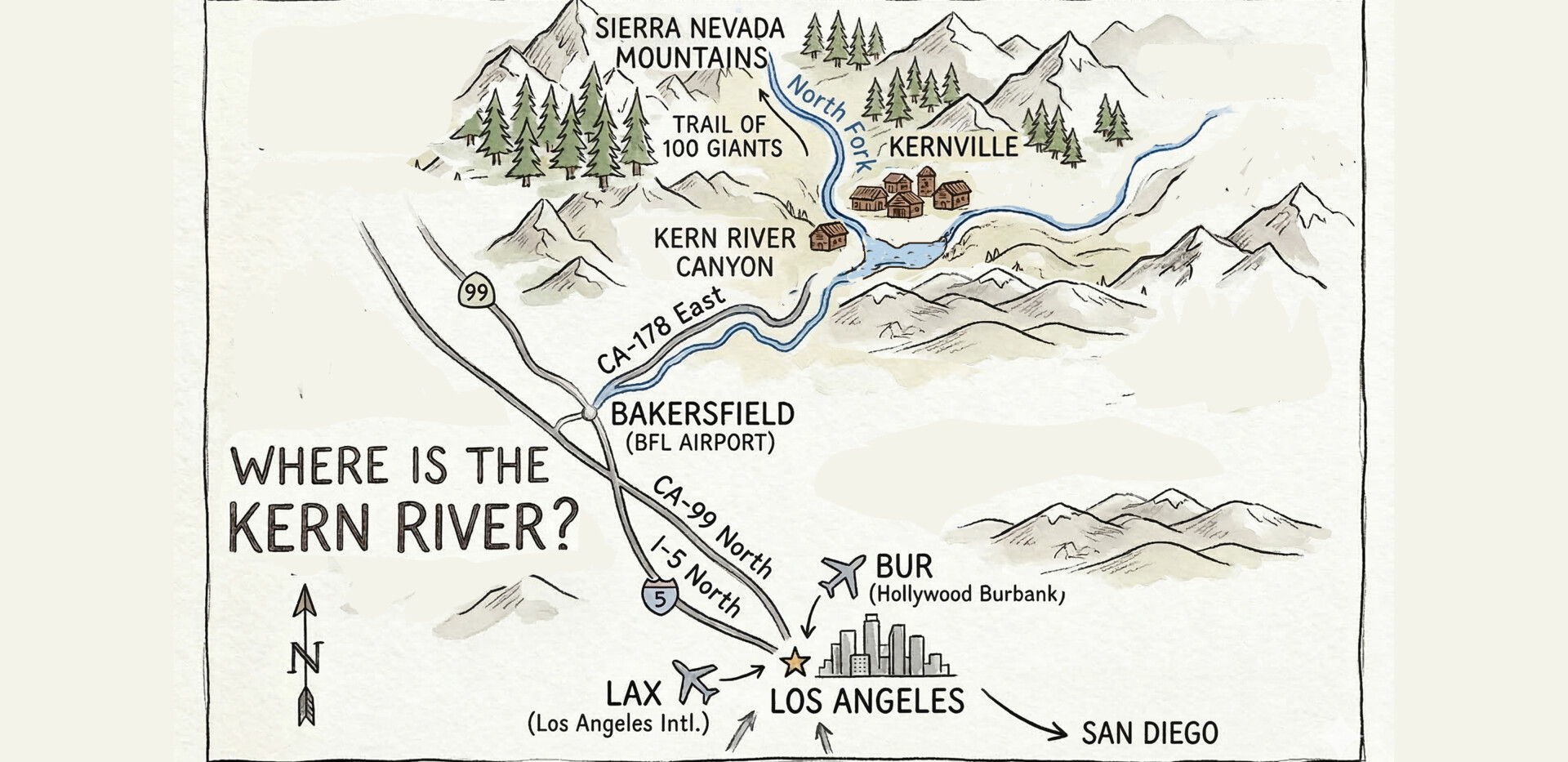 Kernville, CA Your trip begins in the Kernville area. This charming, historic Old West town is the perfect gateway to the Sequoia National Forest. It strikes a rare balance—offering the welcoming, unplugged feel of a true mountain retreat, alongside great local amenities.